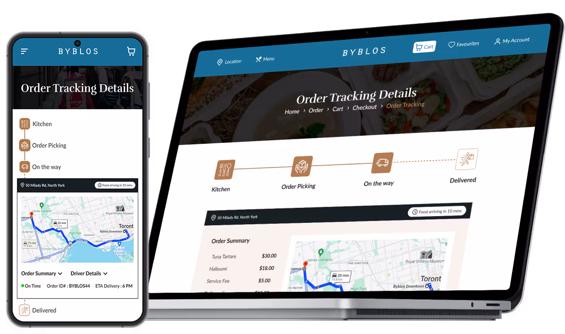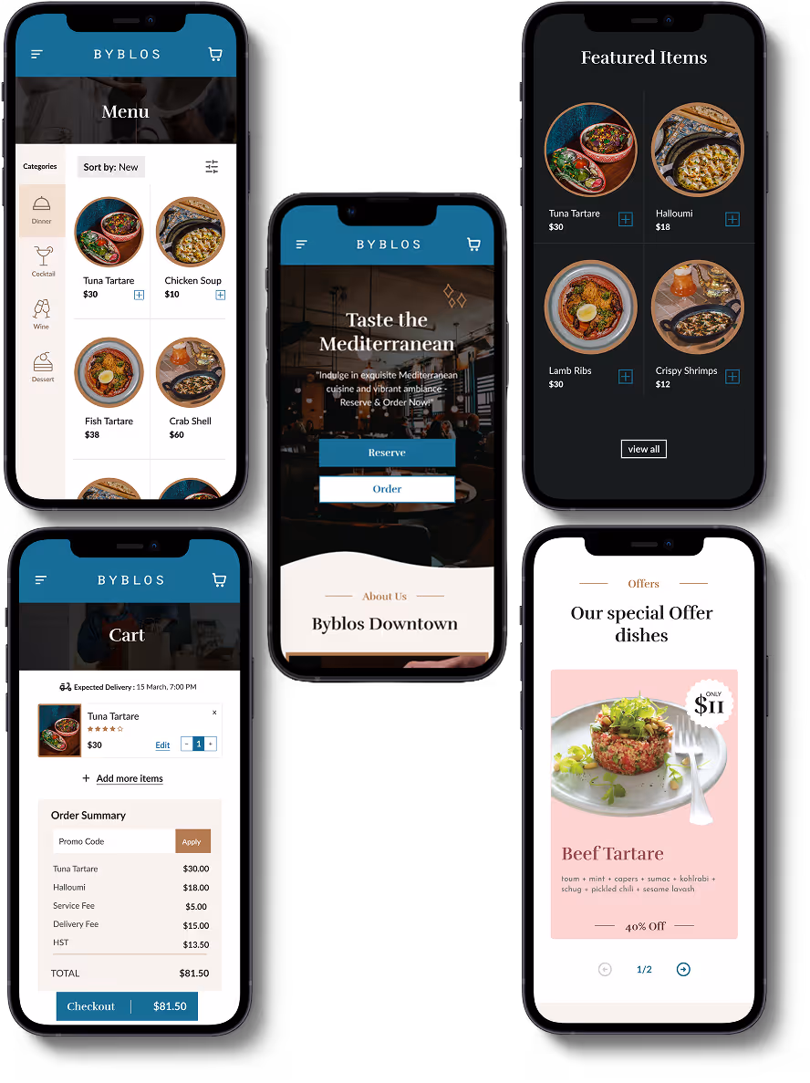 The timeline was short, we completed this project in 6 weeks. These were the additional features that we aimed to add Search, Location options, featured/promo Items, Favourites, order tracking, Chef profiles, revamp of UI of Byblos current website.